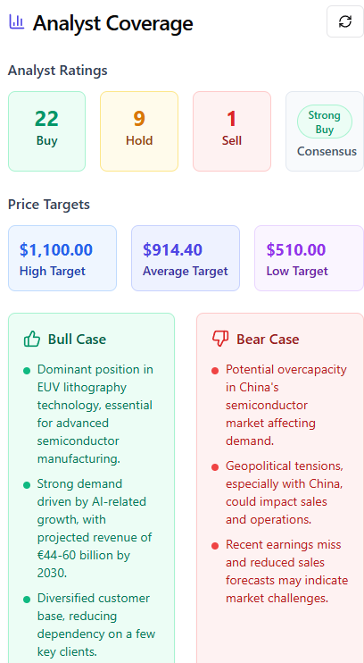 I now have a ~$30K position in ASML and I will continue to add shares on dips. I fully believe that AMSL is a stock worth a minimum of $1,000 because the business has the strongest moat in the world and is aligned to benefit from the growth of AI. For reference, here are some notable bull case and price target metrics, according to Yieldly.