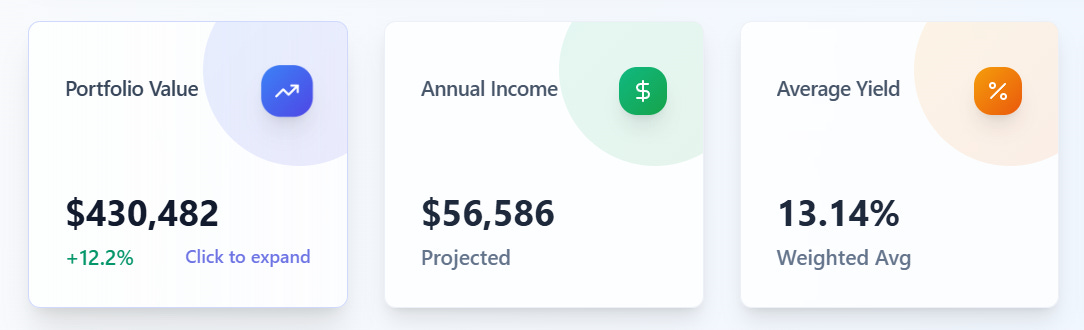My portfolio value now sits above $430K and generates an estimated annual income of $56,586. The goal is simple. I want to build a portfolio that pays me now and also participates in the growth of the market. I’ve designed this portfolio to function like a machine that gets more efficient the longer I keep feeding it.