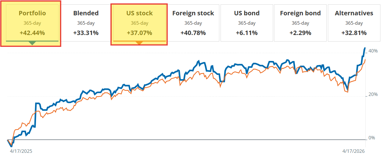 My total return over the last 365 days has reached 42.44%, which significantly outperforms the broader US stock market return of 37.07% during the same period. This outperformance is the direct result of a focused strategy that balances aggressive technology growth with high yield income engines.