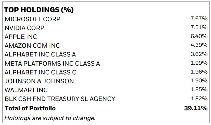 BALI balances out SCHD because this fund provides exposure to the highest quality technology companies in the world. We can see that BALI provides exposure to Microsoft MSFT 0.00%↑, Nvidia NVDA 0.00%↑, Apple AAPL 0.00%↑, and Amazon AMZN 0.00%↑ for example.