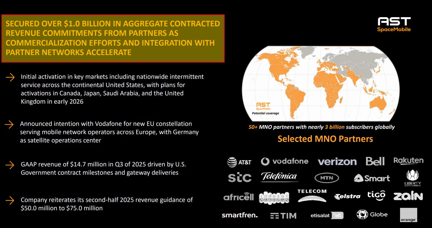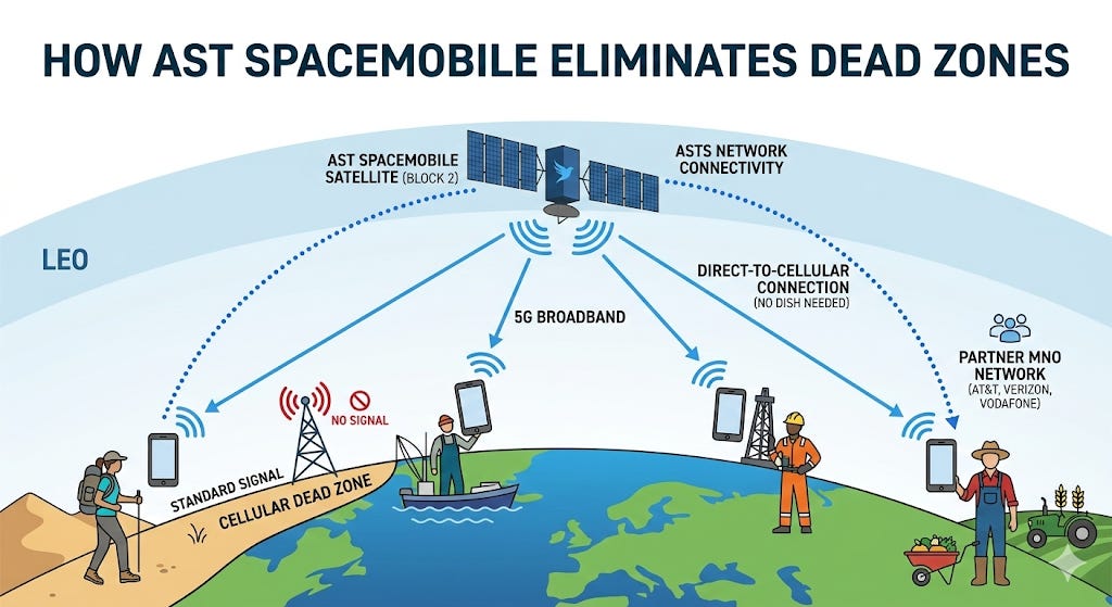 By operating as a B2B2C partner, ASTS instantly gains access to the 3 billion customers these telecom giants already have. The deal is simple: AT&T and Verizon handle the customer service and billing, ASTS provides the space signal, and they split the revenue 50/50.
