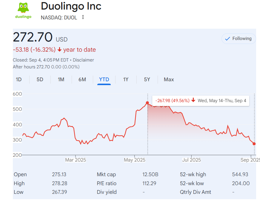 When I look at Duolingo, I see a business that delivered a very strong second quarter of 2025. Yet, despite this impressive performance, the stock's price faded its post-earnings pop and is now trading below its pre-earnings level. This is a disconnect and one I believe is fueled by irrational fear around the company’s implementation of AI. The market is so caught up in the idea that AI could disrupt Duolingo's business that it is missing the real growth story. Thankfully, you and I can take advantage of this opportunity.