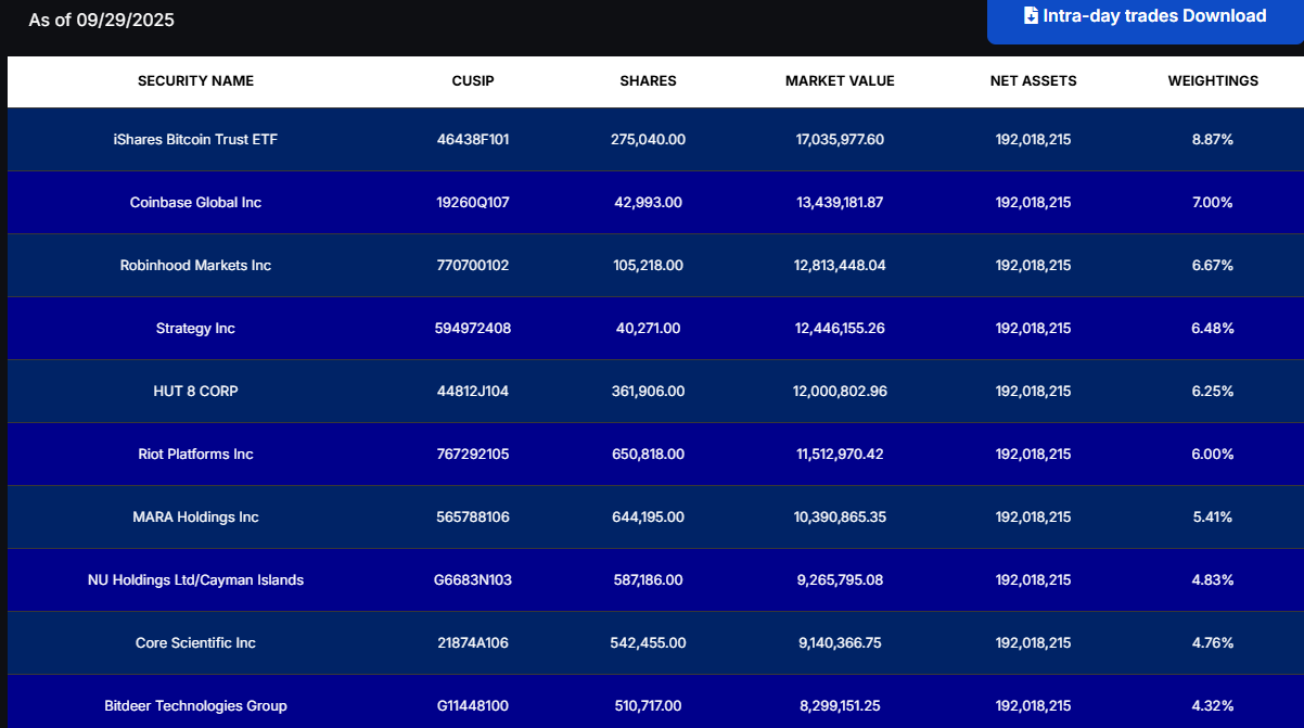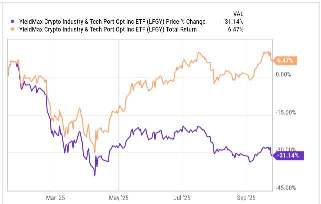 The way LFGY generates its yield is by taking advantage of the volatility in the crypto sector. Unlike many YieldMax funds that rely on synthetic positions, LFGY actually holds the shares of the companies it writes options against. This provides it with a more tangible exposure and creates a slightly different risk profile than some of its peers.