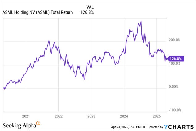 ASML Holding (ASML) remains one of the most strategically vital companies in the semiconductor supply chain. It dominates the global market for photolithography systems and especially EUV (extreme ultraviolet) technology. These are essential to the production of advanced semiconductors. Despite recent underperformance in its stock price and market unease over forward bookings, the long-term demand for ASML’s equipment remains intact, driven by AI, data center expansion, and regionalization of chip manufacturing. Current valuation compression presents a compelling opportunity for long-term investors.