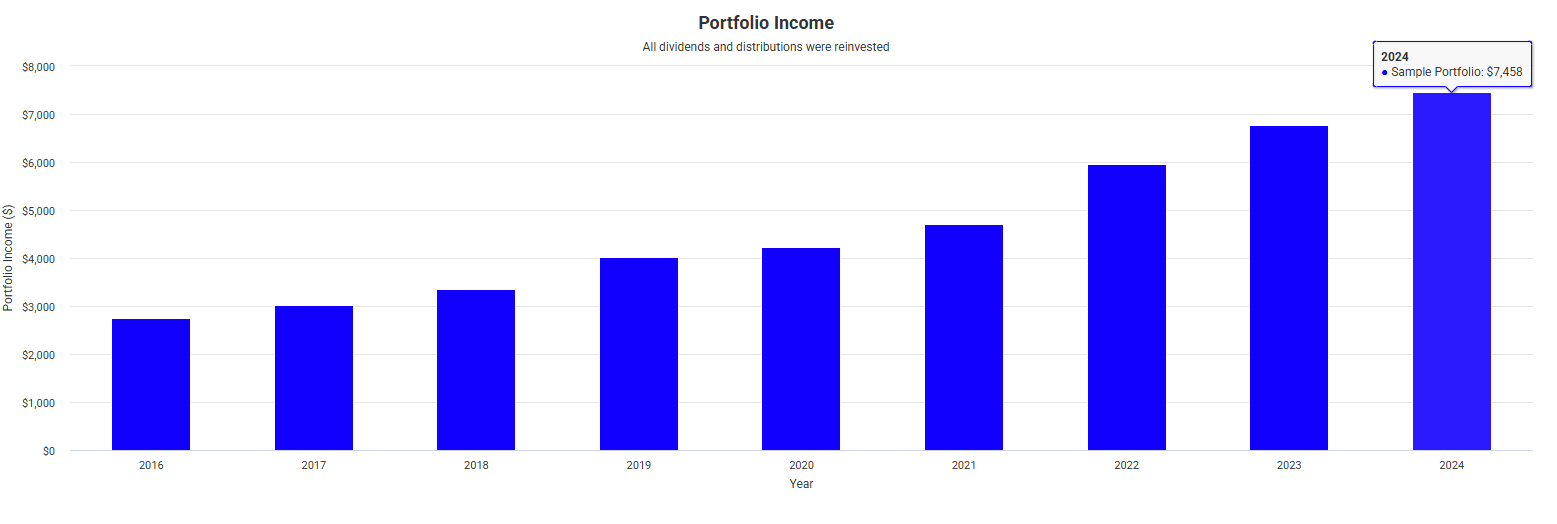 For some reason, many investors don’t even know that a sector like this exists. This is why you can benefit by being in the know. Most people see a high dividend yield of 9% and think something must be wrong. However, that is not always the case! The dividends paid by ARCC have been so stable that investors would have been able to substantially increase their income by simply remaining invested and reinvesting distributions. I ran a back test of a $25,000 and here are the results.: