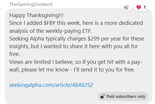 For Black Friday, I’m offering 20% off all new annual subscriptions to Dividendomics. This is the lowest price I’ll offer all year and it’s available through Monday only.