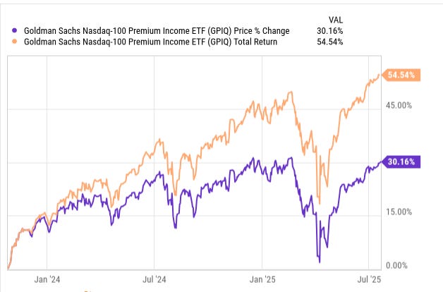 Sustainable Distributions and Capital Preservation: GPIQ focuses on delivering consistent monthly distributions, with a current yield in the range of 10-11%. Crucially, these distributions are largely supported by actual net investment income from dividends paid by its equity holdings and the premiums collected from option sales. While some portion might be classified as return of capital, GPIQ's strategy aims to minimize significant NAV erosion.