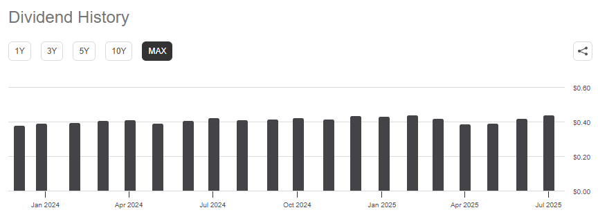 As we can see below, the dividend payouts have remained fairly consistent since the fund’s inception.