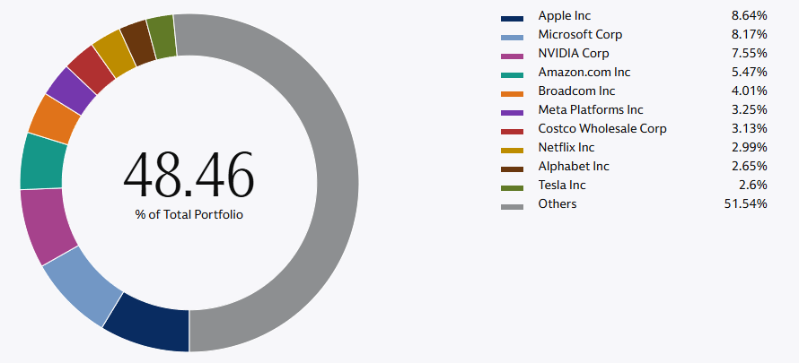 Direct Equity Ownership and Quality Holdings: At the heart of GPIQ's quality lies its commitment to holding the actual underlying equities of the Nasdaq-100 index. This isn't a synthetic replication; GPIQ directly owns shares of the 100 largest non-financial companies listed on the Nasdaq. With substantial assets under management, GPIQ provides diversified exposure to the powerhouses of innovation – predominantly technology giants like: