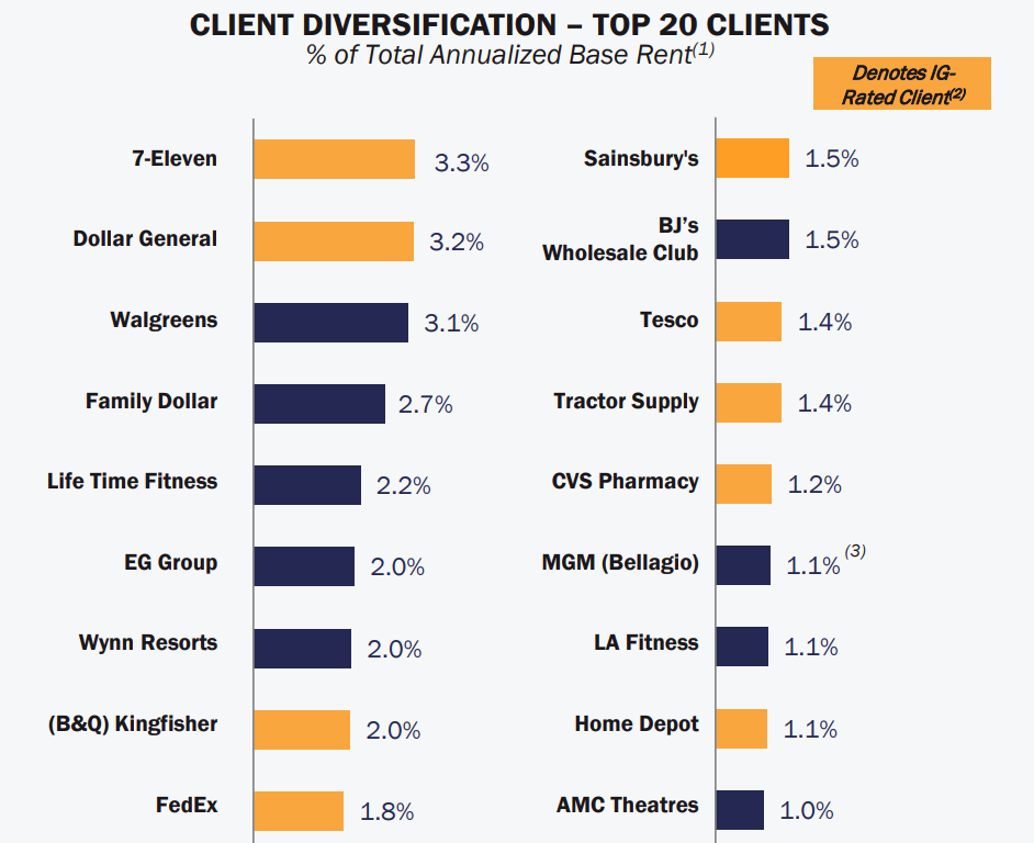 By investing into O 0.00%↑, you can essentially collect rent in the form of dividends. O has so many well known tenants under their umbrella: