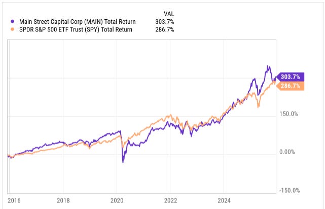 In fact, MAIN has outperformed the S&P 500 over the last decade. I fully expect this outperformance to continue.