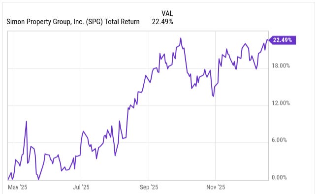 👉 SPG’s total return (including dividends) amounts to 22.5% since my article.