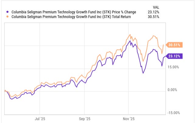 This was an article dedicated to an income fund that pays out a 7% dividend yield, while providing exposure to the highest quality technology companies in the world. Columbia Seligman Premium Technology Growth Fund STK 0.00%↑ was trading at a massive discount at the time and I recognized this opportunity to accumulate.