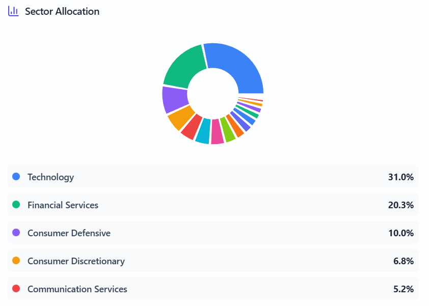 My strategy is evolving. I still utilize option ETFs for cash flow, but I am becoming ruthless about which ones deserve a spot in the portfolio. Reinvesting dividends into growth positions like Amazon and Meta is the key method I am using to offset NAV erosion. As you’ll see below, my portfolio leans heavily towards technology and financial investments.