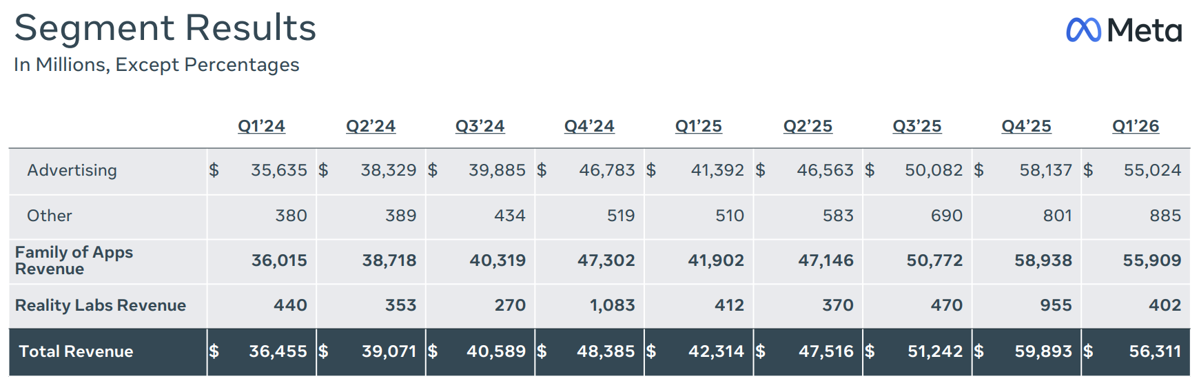 Wearables Momentum: Daily active users of Ray-Ban Meta smart glasses tripled year over year, proving that Meta is successfully moving from social media into AI hardware.