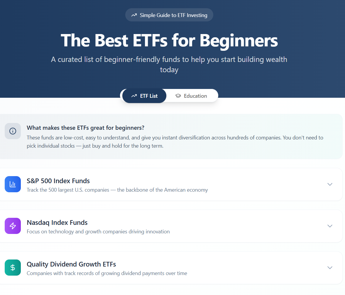 📊 Curated ETF List — Hand-picked funds across 4 categories: