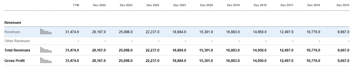 Revenues and Gross Profit has steadily increased year over year, for the last decade. All in all, I anticipate Mastercard to deliver an annual growth between 12% - 15% over the next five years.
