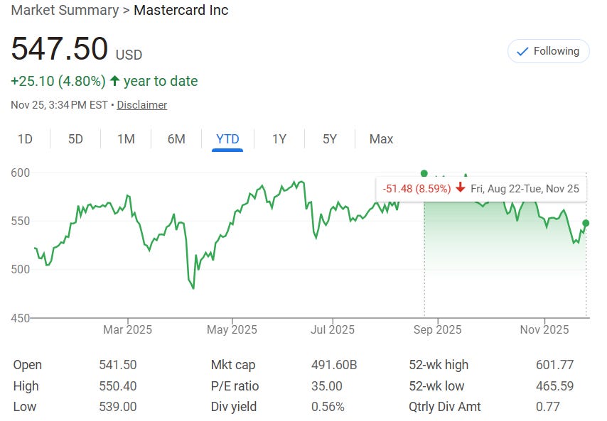 What matters most is that Mastercard’s long term growth drivers have not changed. The shift away from cash continues. International travel keeps growing. Digital wallets and e commerce expand every year. And Mastercard is positioned to benefit from all of it.