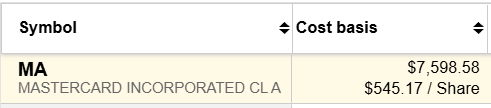 So even though Mastercard isn’t directly paying down my margin, the growth reduces the overall weight of my margin usage since the value of my portfolio is rising.