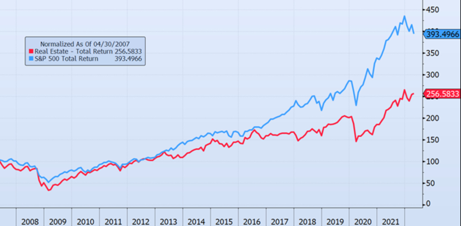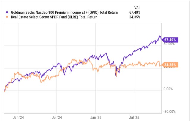 Even if we compare the performance of GPIQ versus the real estate sector ETF, we can see how GPIQ severely outperforms over the same time frame.