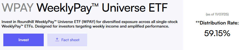 WPAY has a massive dividend yield over 59% and pays out every Wednesday.